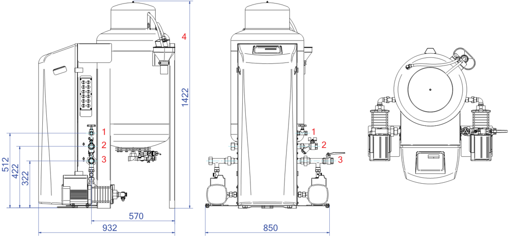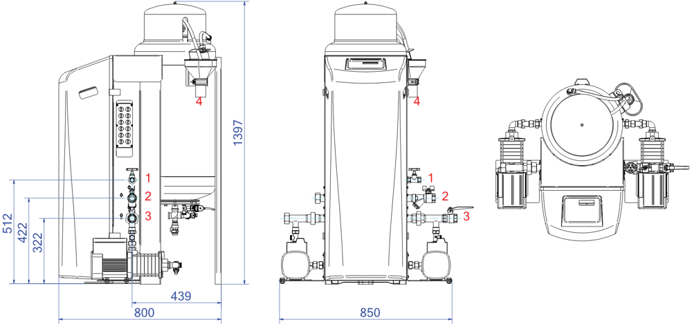 - Zwei weitere drucklose Ausdehnungsgefäße können hinzugefügt werden