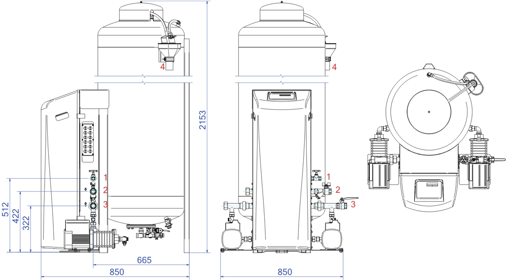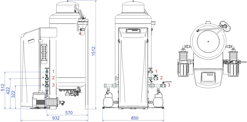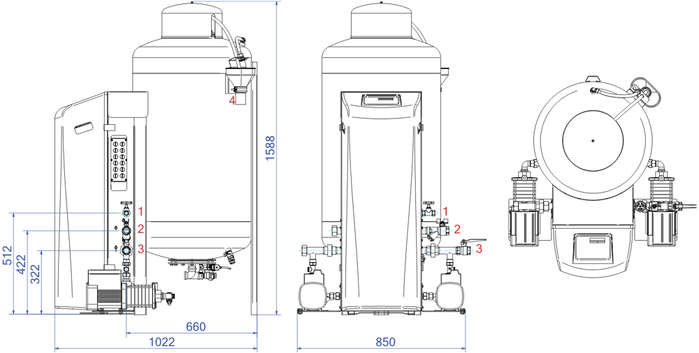 - Kommt mit 6 möglichen Behältervolumina: 45, 75, 125, 200, 300 oder 500 Liter
