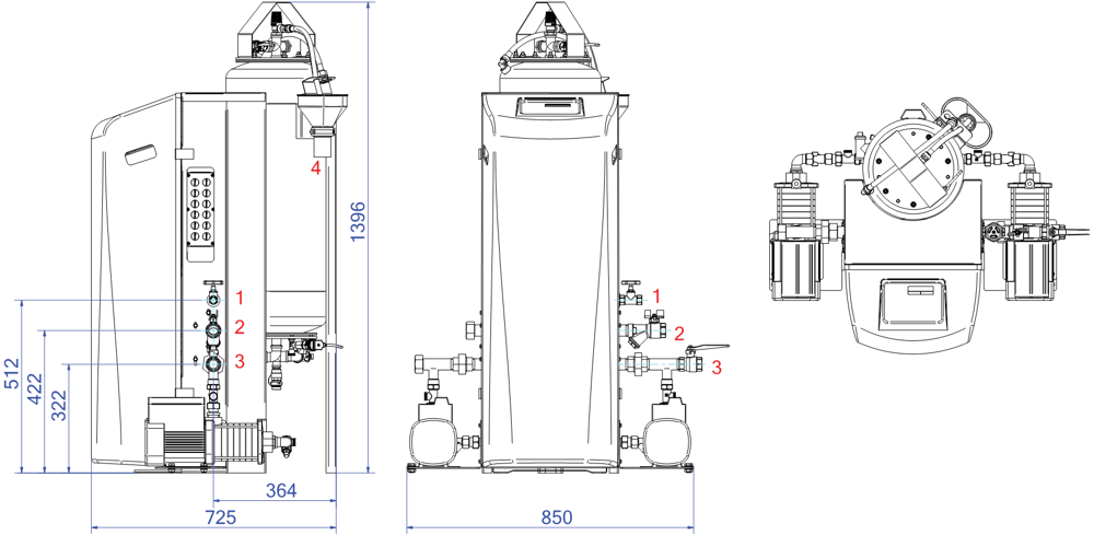 Die MultiControl Kompakt DUO Twin ist ein automatisches Expansions- und Druckhaltegerät. Das Gerät enthält 2 Pumpen (2x 50 %) und 2 Überströmventile für einen energiesparenden und redundanten Betrieb. Ein druckloser Expansionsbehälter ist integriert.