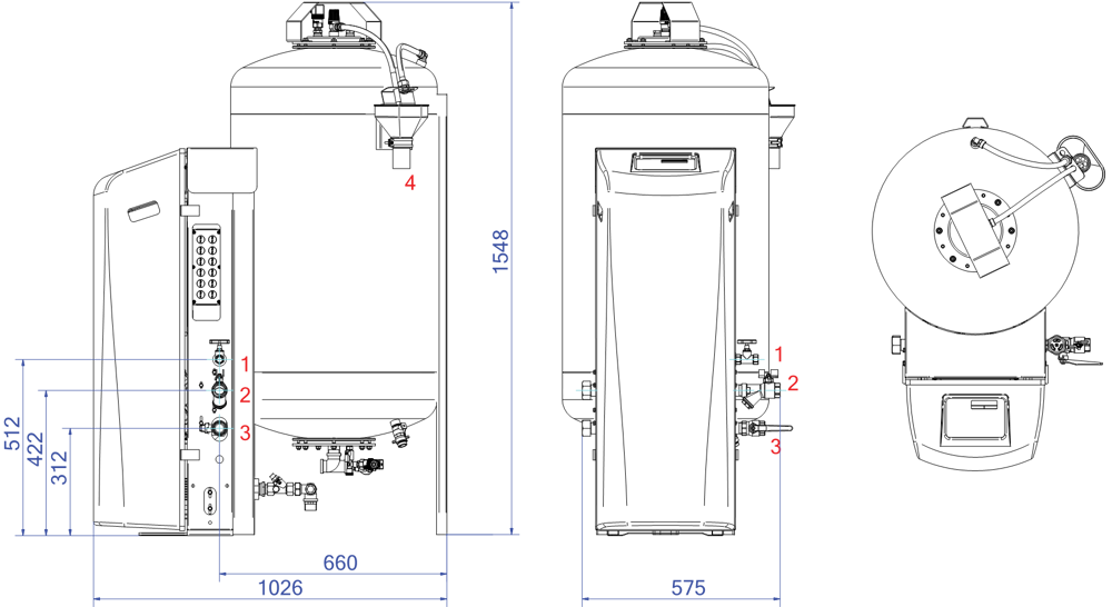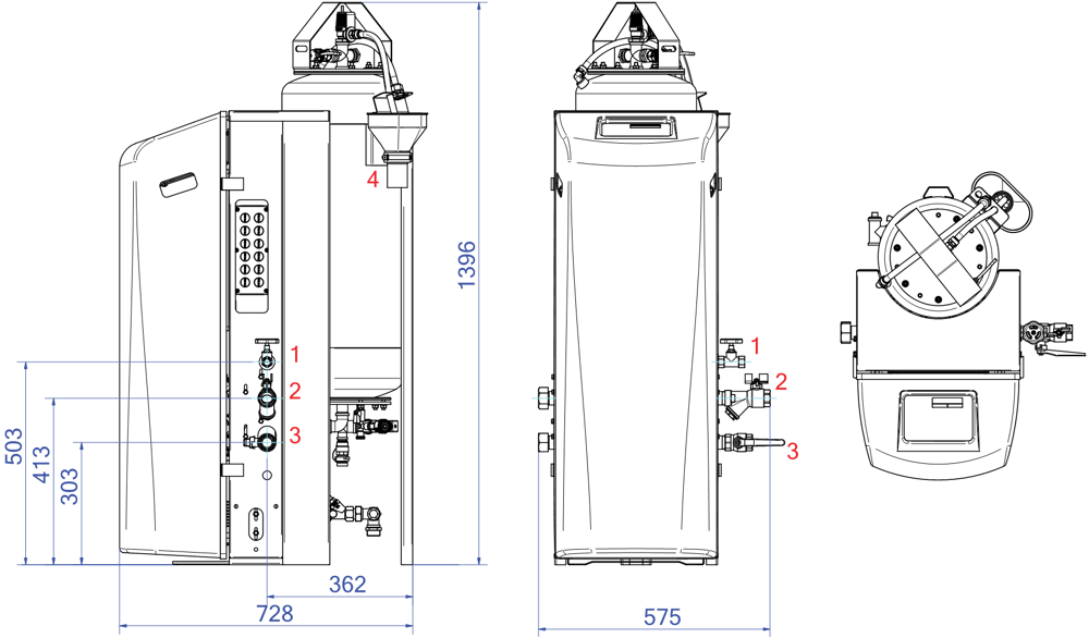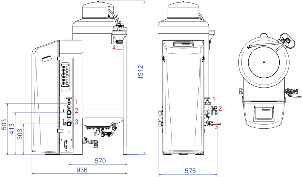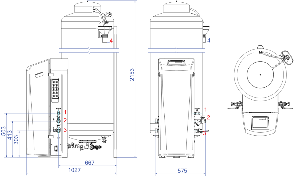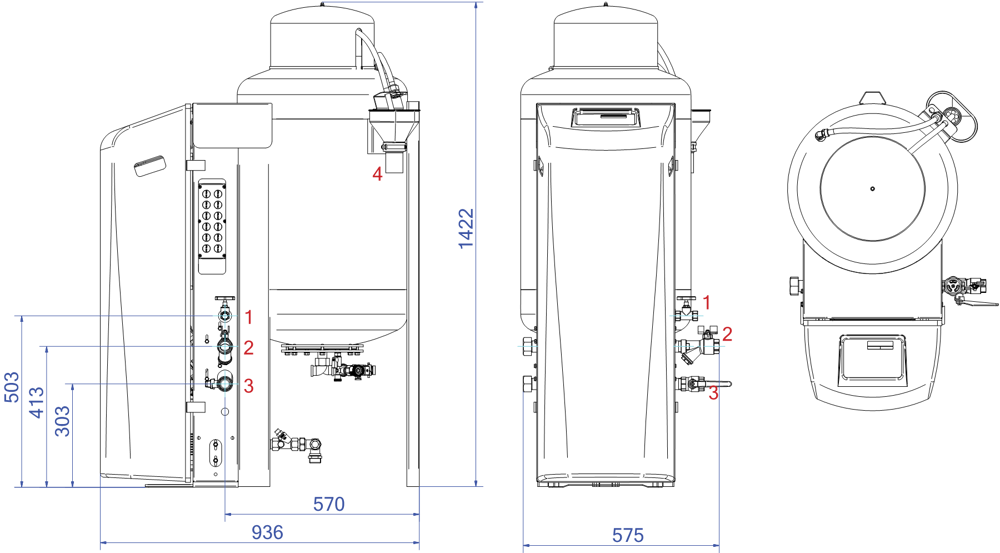 - Die maximale Temperatur am Anschlusspunkt beträgt 70°C (über 70°C mit Zusatztank möglich)