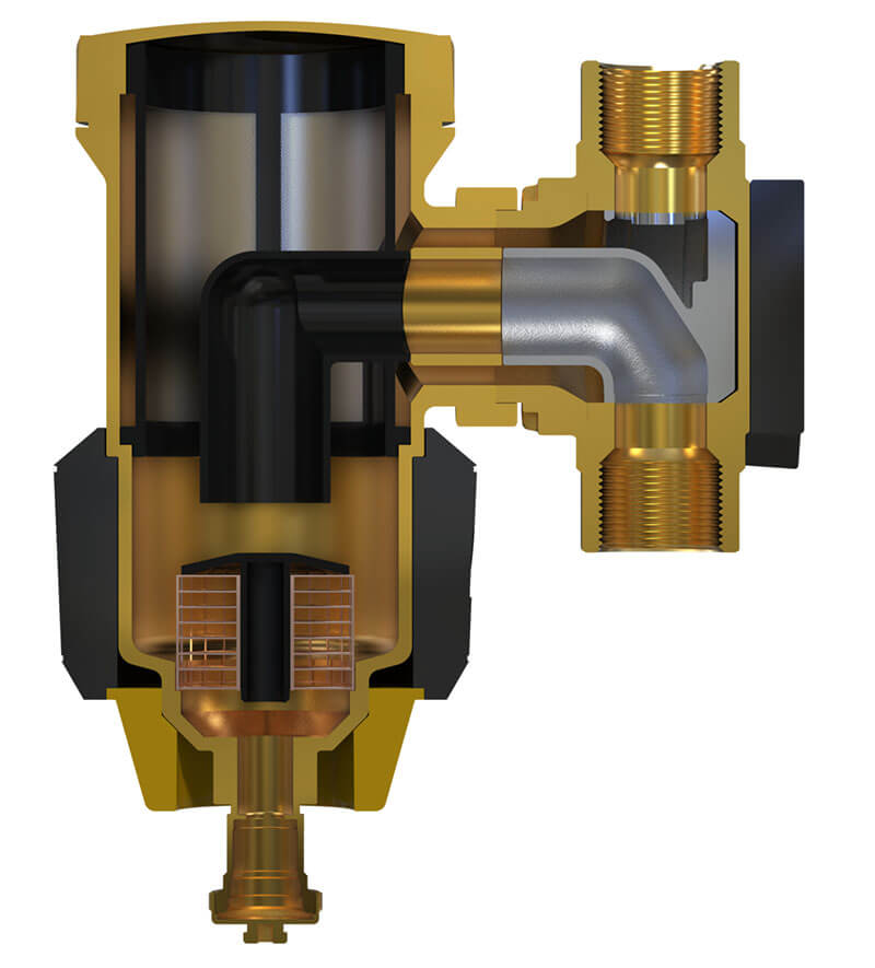 Der Filter bildet das Herzstück des SpiroTrap HPF. Das Design ist das Ergebnis einer umfassenden Untersuchung der Partikelgröße und der Risiken in Heizungssystemen. Partikel, die größer als 160 µm sind, verursachen am häufigsten Verstopfungen und Verschleiß und werden vom Filter sofort zurückgehalten. Beim SpiroTrap HPF fließt Wasser in den Abscheider und trifft zuerst auf das Spiro-Rohr, das für eine ruhige, laminare Strömung sorgt. Dadurch sinken Schmutzpartikel nach unten. Magnetische Partikel wie Magnetit werden durch einen starken Magneten im SpiroTrap HPF aufgefangen. Das Wasser fließt dann zuletzt durch einen feinmaschigen Filter. Dieser Filter ist für das Auffangen kleinerer magnetischer und nichtmagnetischer Schmutzpartikel optimiert, die nicht durch Absetzen oder magnetisches Auffangen entfernt wurden.